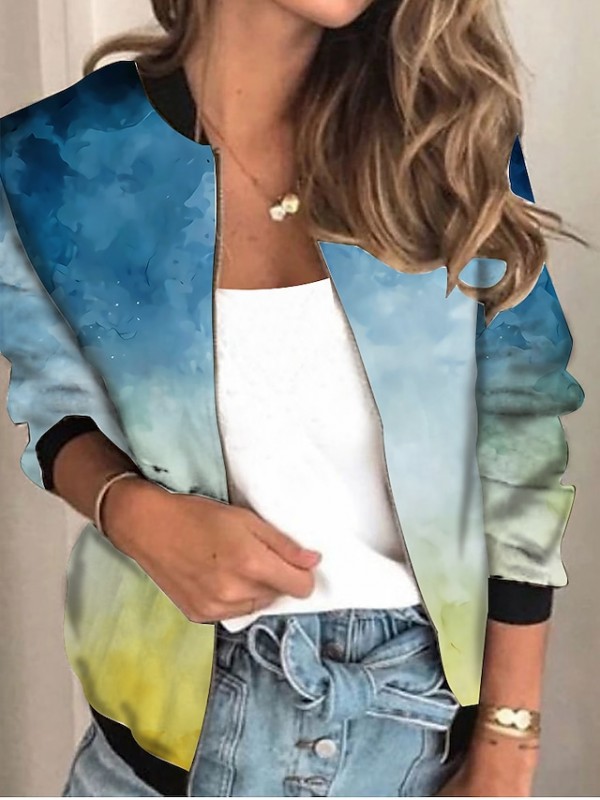 Women's Jacket Sports Going out Spring & Fall Regular Coat Regular Fit Streetwear Jacket Long Sleeve Tie Dye Patchwork Print Blue #8468089