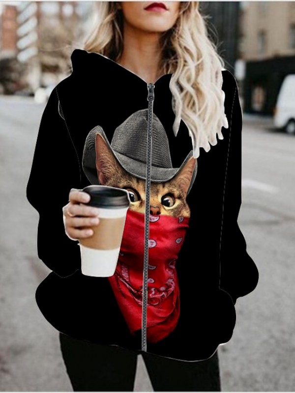 Women's Hoodied Jacket Sports Going out Spring & Fall Regular Coat Regular Fit Active Streetwear Jacket Long Sleeve Print Patchwork Print Black #8468118