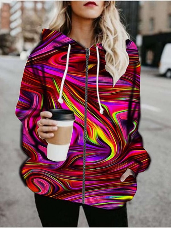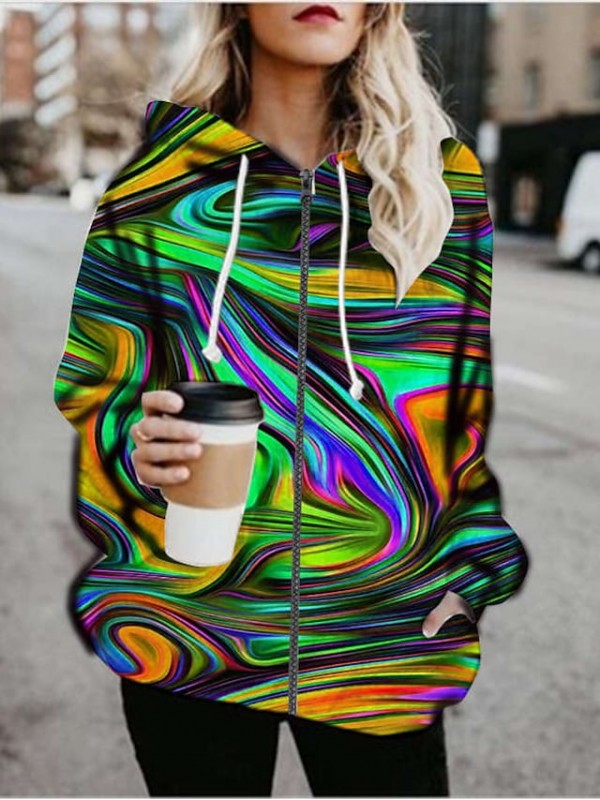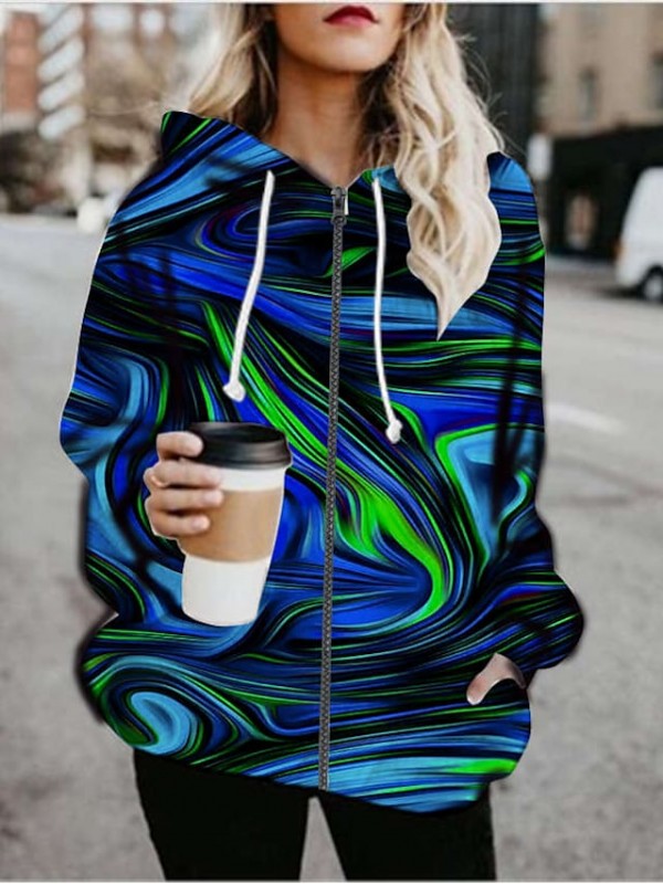 Women's Hoodied Jacket Sports Fall & Winter Regular Coat Loose Chic & Modern Jacket Long Sleeve Print Print Blue Green #8468169
