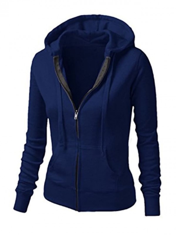 Women's Coat Daily Fall Spring Regular Coat Regular Fit Sporty Jacket Solid Color Zipper Blue Black / Cotton #8545668