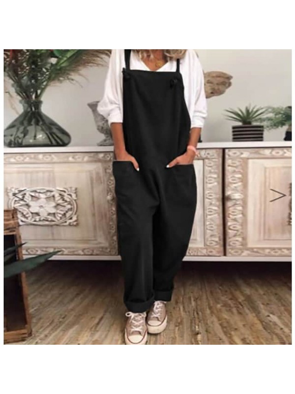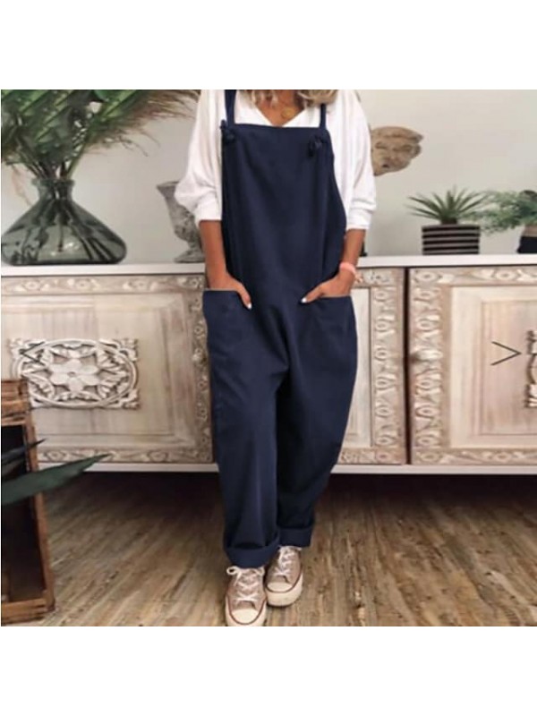 Women's Basic Fashion Overalls Dungarees Baggy Full Length Pants Daily Weekend Inelastic Plain Breathable Soft Mid Waist Loose Black Khaki Dark Blue S M L XL XXL #8702992