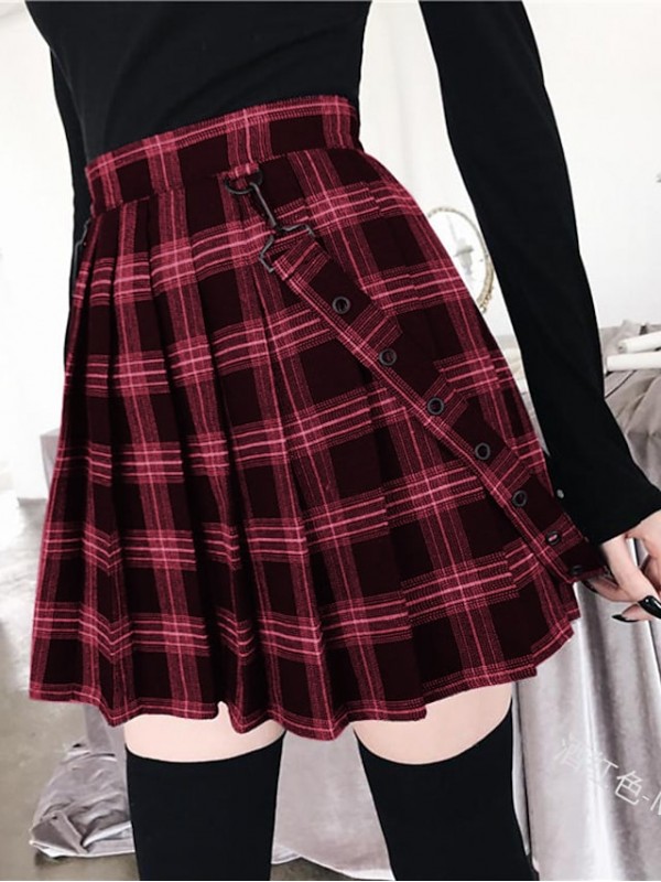 Gender: Women's, Style: Harajuku, y2k, Gothic, Punk Lolita, Chic & Modern, Occasion: Halloween, Party / Evening, School, Fabric: Poly&Cotton Blend, Design: Novelty, Modern Style, Details: Without Lining, Elasticity: Inelastic, Pattern: Tartan, Square, Plaid / Check, Season: Spring & Fall, Summer, Pants Length: Capris, Special selected products: COD, Pattern Theme: Black & White, Black & Red, Dress Length: Mid-Calf, Pants Type: Overalls, Skirt,