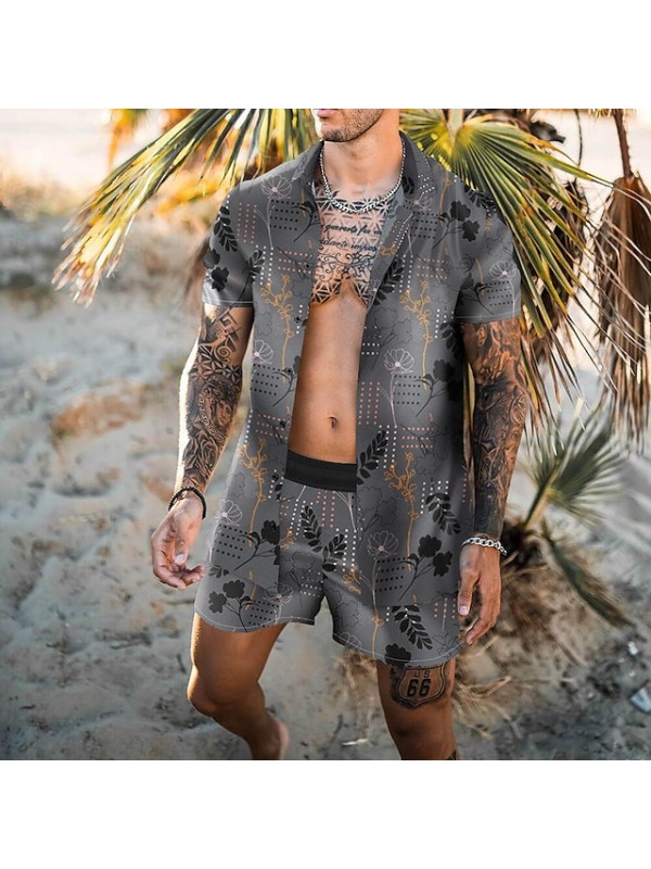 Men's Shirt Set 3D Print Floral Graphic Prints Turndown Casual Holiday 3D Print Button-Down Short Sleeve Tops Casual Fashion Hawaiian Comfortable Gray #8967540