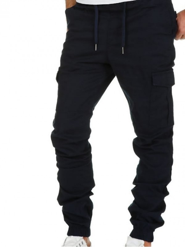 Men's Basic Jogger Trousers Cargo Pants Multiple Pockets Full Length Pants Solid Colored Mid Waist Slim Black Gray Khaki Green Navy Blue S M L XL 2XL #8017609