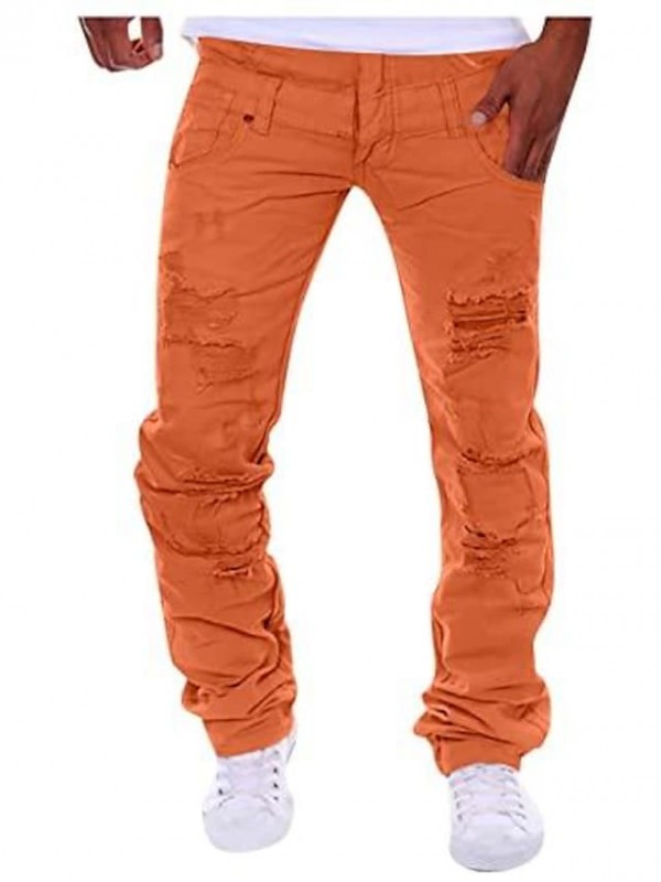Men's Cargo Pants Ripped Open Bottom Joggers Stacked Sweatpants Slim Fit Straight Biker Trousers Hip-hop Streetwear Orange #9001673