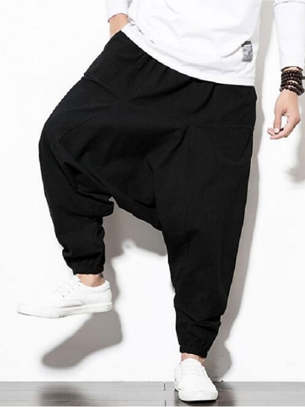 Men's Chinoiserie Harlem Pants Harem Pants Solid Colored Mid Waist Slim Black Red Navy Blue XL XXL 3XL 4XL 5XL #8021437