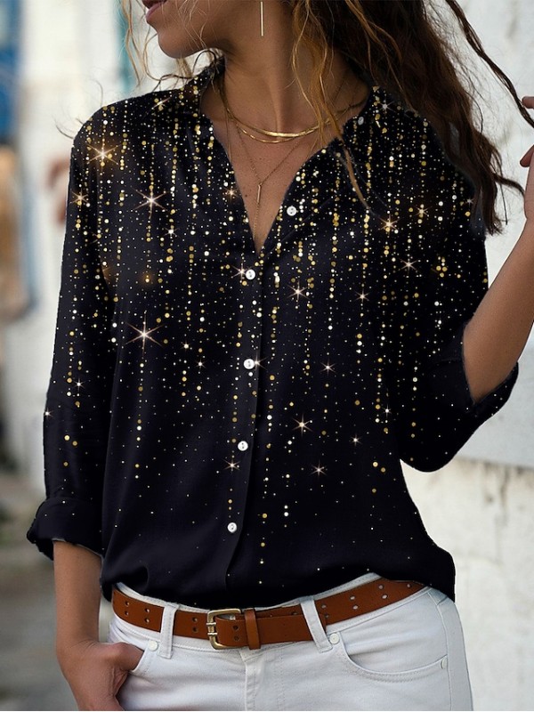 Women's Blouse Shirt Graphic Button Print Shirt Collar Streetwear Tops Green Blue Purple / 3D Print #8932066