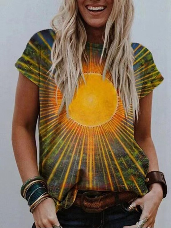Women's Abstract Painting T shirt Graphic Print Round Neck Basic Tops Yellow / 3D Print #8997702