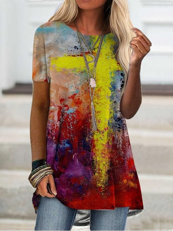Women's T shirt Graffiti Print Round Neck Tops Basic Basic Top Black Blue Khaki #8592592
