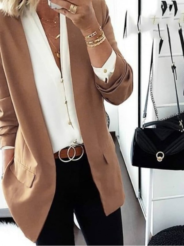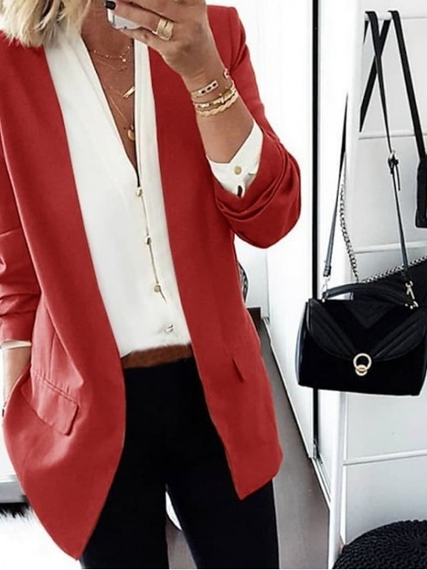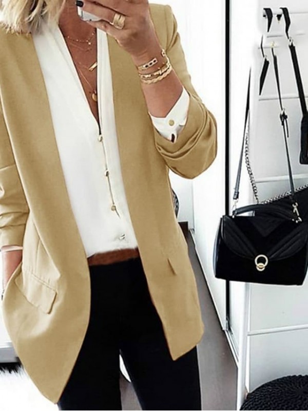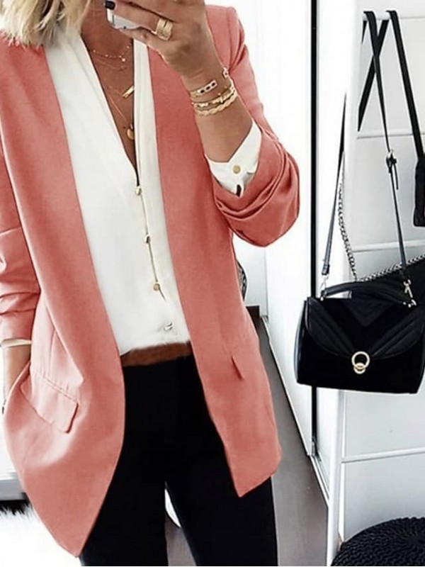 Women's Blazer Solid Color Pure Color Casual Coat Fall Spring Causal Regular Jacket Blushing Pink / Shawl Lapel #8058840