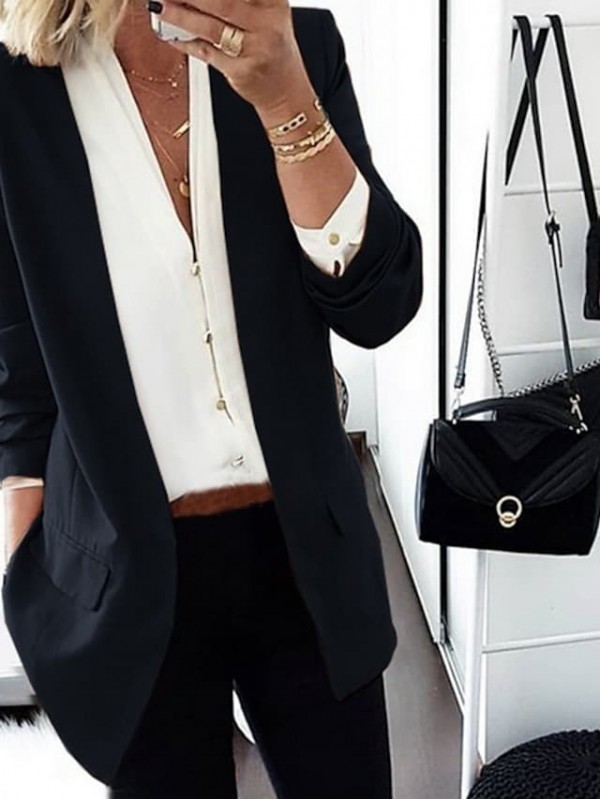 • Features: Basic blazer jacket for women, open front design, two functional flap pockets, perfectly carrying some necessity, or nailing a chic look.