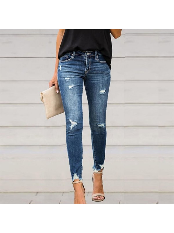 Women's Fashion Skinny Jeans Side Pockets Cut Out Ankle-Length Pants Casual Weekend Micro-elastic Plain Comfort Mid Waist Light Blue S M L XL XXL #9024652
