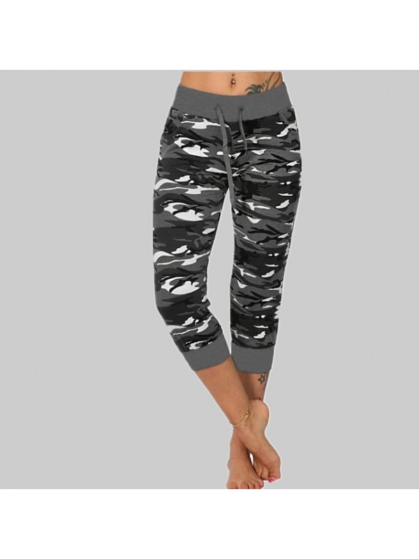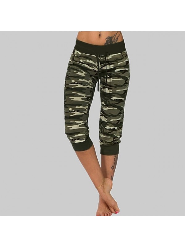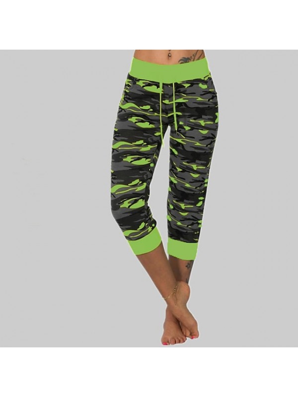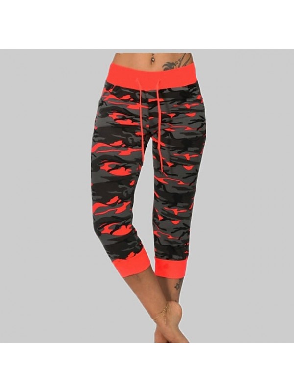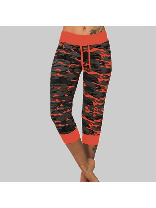 Women's Casual / Sporty Chino Chinos Print Calf-Length Pants Daily Going out Camouflage Mid Waist ArmyGreen Gray Orange Red Yellow S M L XL XXL #8641330