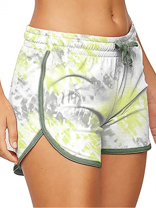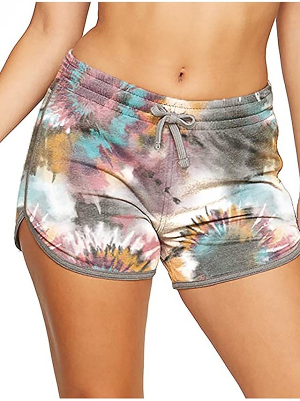 Women's Casual / Sporty Athleisure Shorts Elastic Drawstring Design Print Short Pants Casual Weekend Micro-elastic Flower / Floral Tie Dye Cotton Blend Comfort Mid Waist Gray Pink Light Green Army #9014068