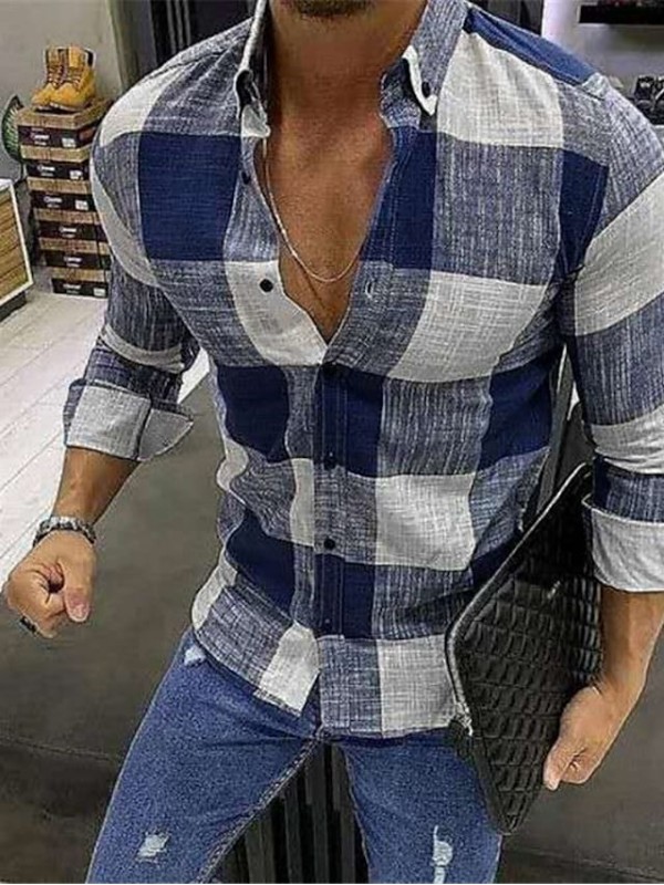 Men's Shirt Checkered Turndown Casual Daily Button-Down Long Sleeve Tops Cotton Casual Fashion Breathable Comfortable Black Red Navy Blue #8623420