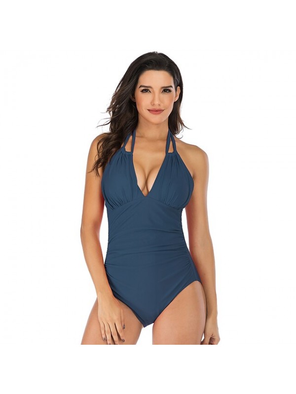 Women's One Piece Swimsuit Knotted Bodysuit Bathing Suit Solid Colored Swimwear Green Blue Breathable Quick Dry Lightweight Sleeveless - Swimming Surfing Beach Summer / Spandex / Nylon / Stretchy #8979647