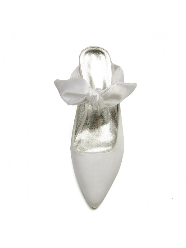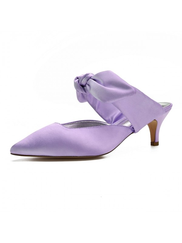Women's Wedding Shoes D'Orsay & Two-Piece Wedding Sandals Bridesmaid Shoes Bowknot Kitten Heel Pointed Toe Sweet Wedding Party & Evening Satin Loafer Spring Summer Solid Colored Light Purple White #6933524