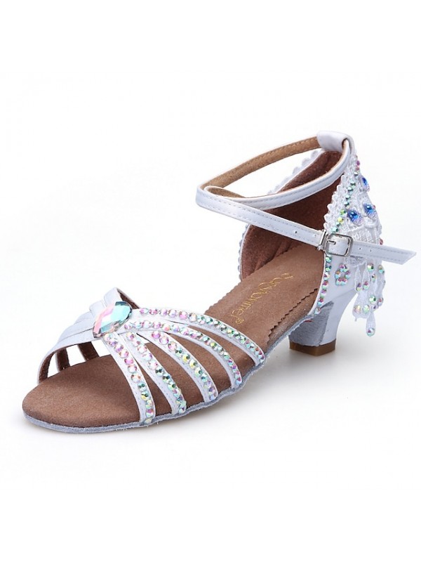 Women's Latin Shoes Heel Crystal / Rhinestone High Heel White Black Rose Red Buckle Glitter Crystal Sequined Jeweled / Satin / Leather / Girls' #8846099