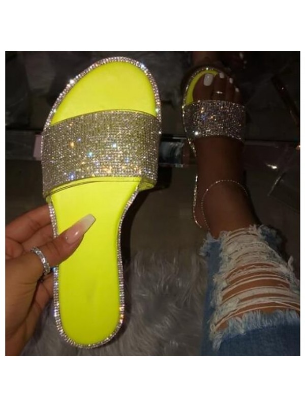 Outdoor Slippers, Flat Sandals, Glitter Crystal Sequined Jeweled, Beach Slippers,