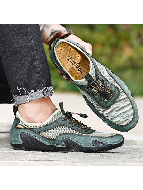Men's Sneakers Sporty Casual Daily Outdoor Running Shoes Walking Shoes Nappa Leather Cowhide Breathable Handmade Non-slipping Booties / Ankle Boots Black Green Brown Spring Summer #8565274
