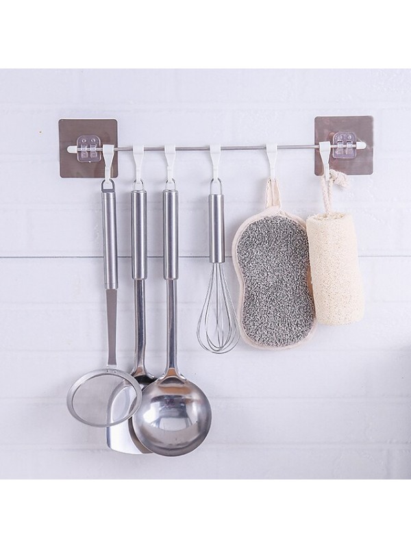Stainless Steel Rod Non-marking Stickers 6 even Hooks Multi-purpose 6 Hooks Kitchen and Bathroom Storage and Finishing Six Rows of Hooks Removable Hooks Storage Artifact #8763164