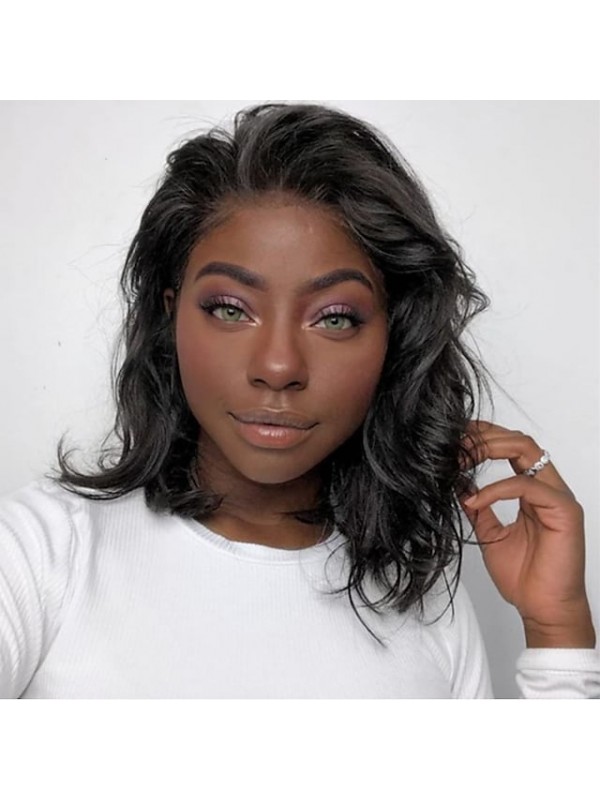 Human Hair 13x4 Lace Front Wig Bob Short Bob Free Part Brazilian Hair Wavy Black Wig 130% Density with Baby Hair Natural Hairline For Black Women 100% Virgin 100% Hand Tied For Women's Short Human #7648312