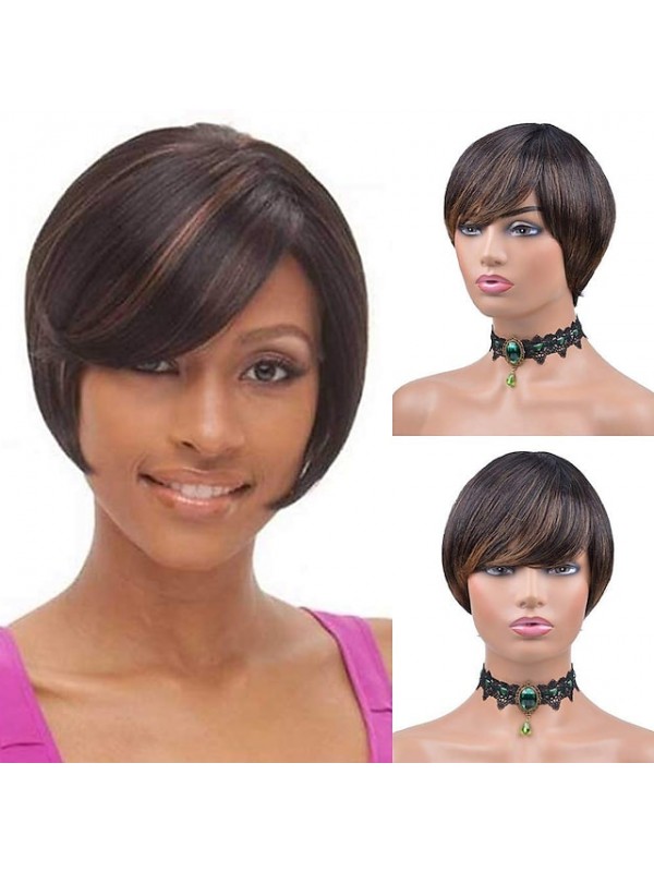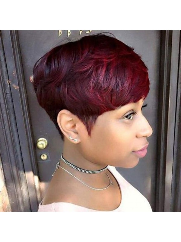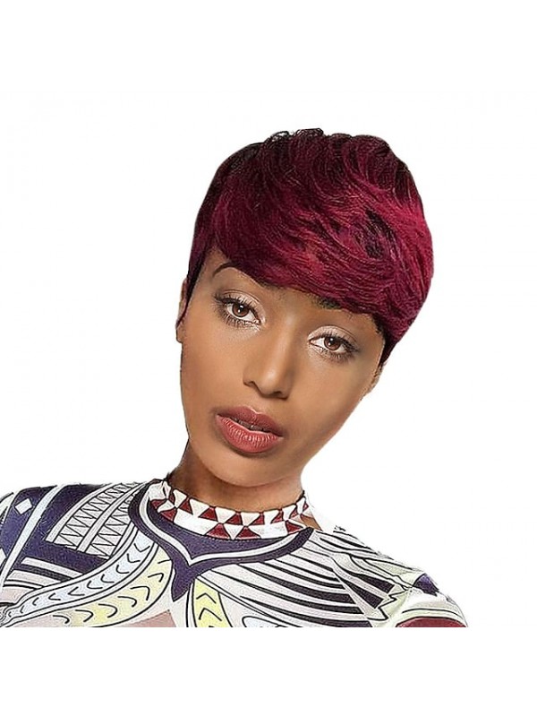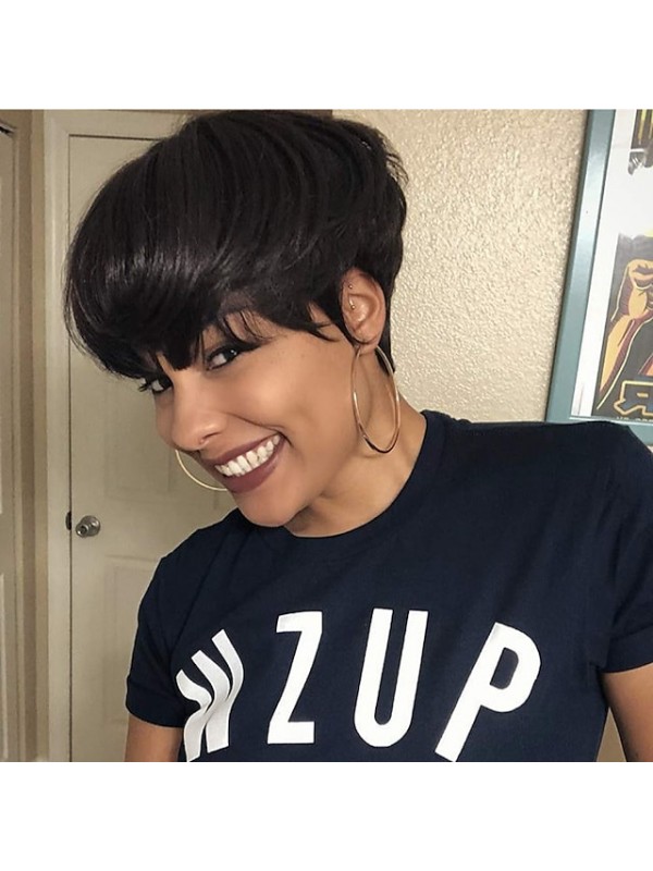 Pixie Cut Human Hair Wig with Bangs Short Human Hair Wigs for Black Women Non Lace Front Wig Full Machine Wigs 150% Density Brazilian Capless Wigs Pixie Cut Human Hair #8982958
