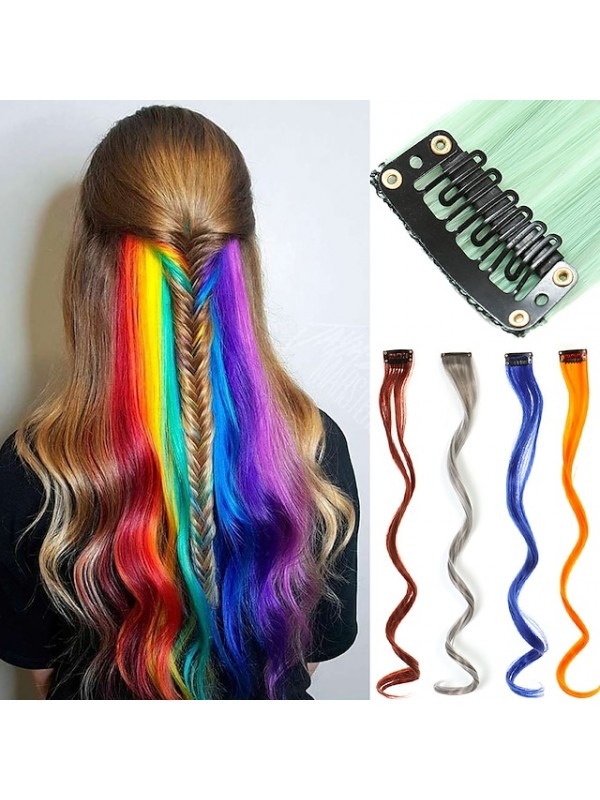 5pcs/set Synthetic Extentions Clip In One Piece Hair Extensions 22 inch Natural Wave For Women Daily Party Use #9031451