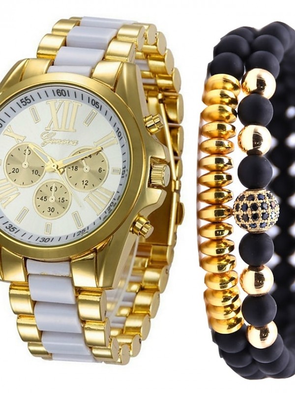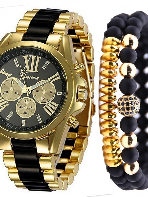 Highlightsmens watch that combines classic and fashion collisions,Gold stainless steel bracelet black dial design, minimalist style, simple and easy to read a watch.Men's stainless steel watch, Japane...